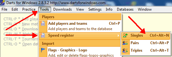 From version 2.7.6.2, a new tool, "speed registration" of players, has been added to Darts for Windows to make